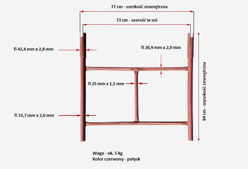 - Ramy rusztowania (grube i podstawowe) – stabilne elementy nośne